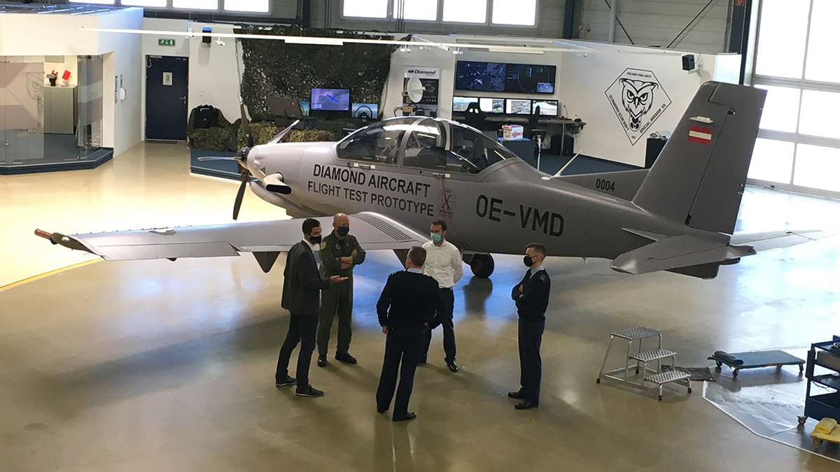 Una delegación de tres de la Fuerza Aérea Belga y la Dirección de Recursos Materiales visitó la sede de Diamond en Wiener Neustadt, Austria, donde realizo vuelos de evaluación del entrenador primario DART-550.