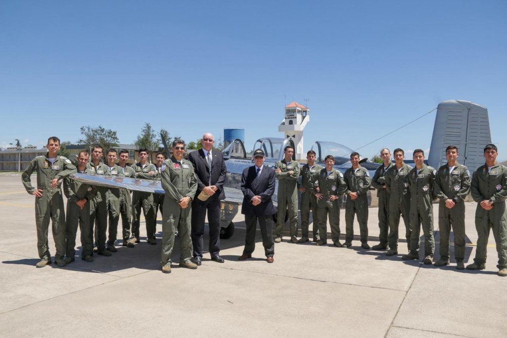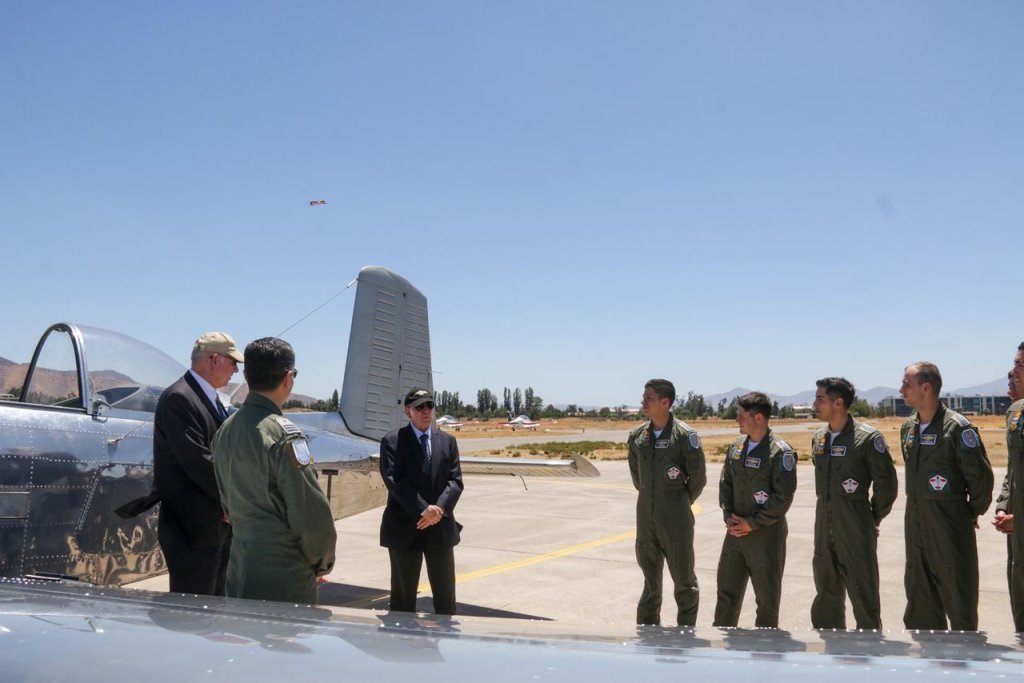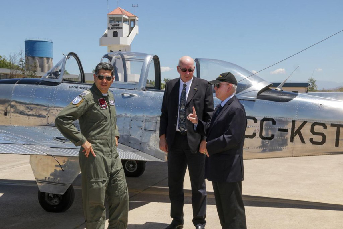 El Presidente y Vicepresidente del Club Aéreo de Santiago, Hans Gesche Walker y Alejandro Latorre Lufer, visitaron la Escuela de Aviación Capitán Manuel Ávalos Prado a bordo de un histórico T-34 Mentor que presto servicio en la Escuela de Aviación, entregando un cuadro de la primera directiva del club fundado en 1928.