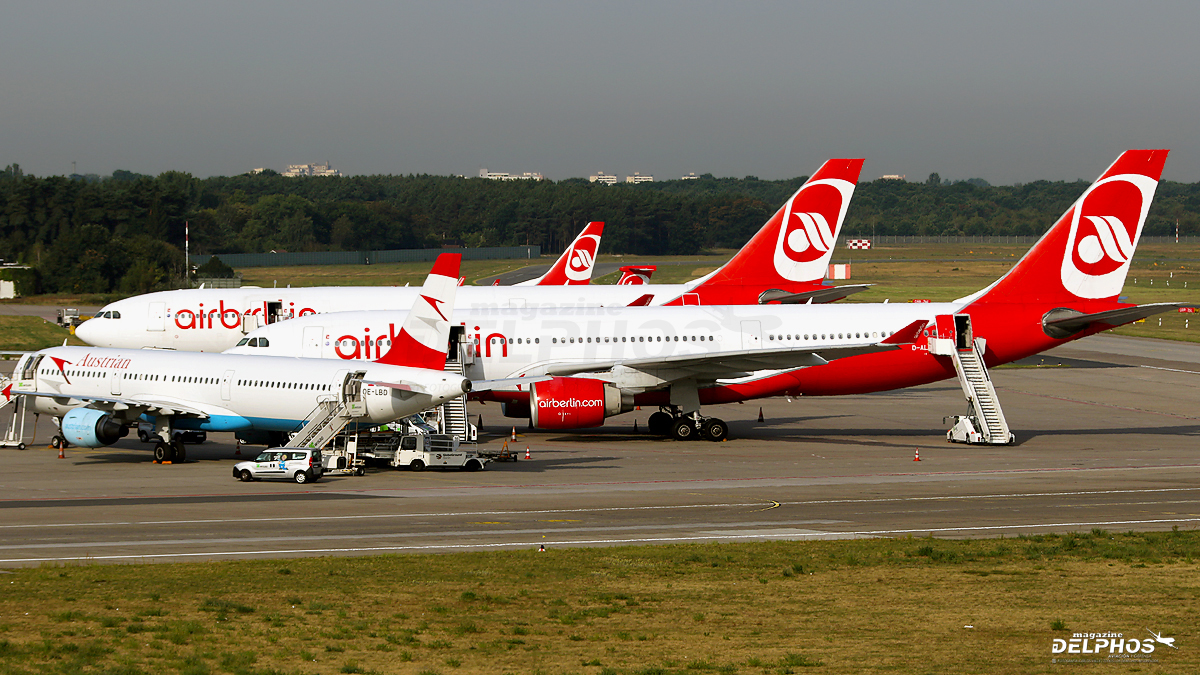 Este aeropuerto fue la base de la desaparecida Air Berlín y LTU. En la actualidad era base de Eurowings, Ryanair y easyJet. En operación regular estaba Lufthansa, Delta Air Lines, United, Bulgaria Air, Alitalia, Nikki, Air Balitc, Air Servia, Air France, Finnair, KLM, Edelweiss, entre otras.
