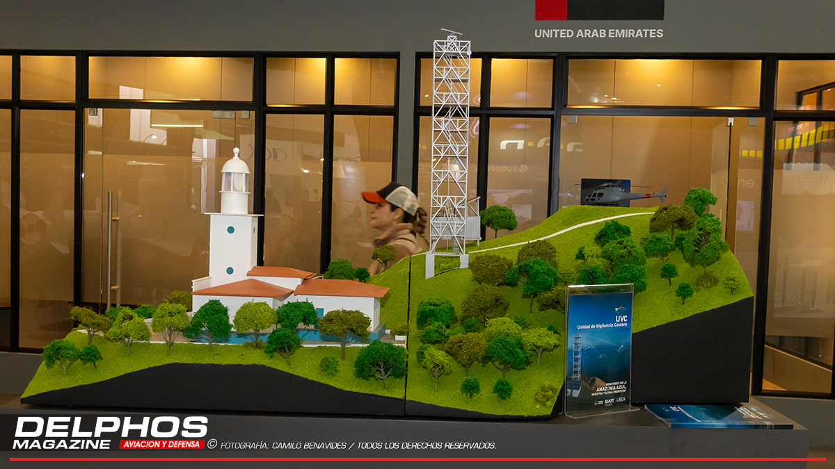 Uno de los ejes más destacados del stand fue Border Shield, un sistema de seguridad fronteriza integrado que combina radares de largo alcance, cámaras electroópticas, sensores de video y tecnología de detección y triangulación de señales de teléfonos celulares. La plataforma permite identificar y rastrear movimientos ilícitos, migración irregular, contrabando y delitos transfronterizos, ofreciendo a los países de la región una solución “llave en mano” para el control de extensos accidentes geográficos y zonas de bajura de vigilancia.