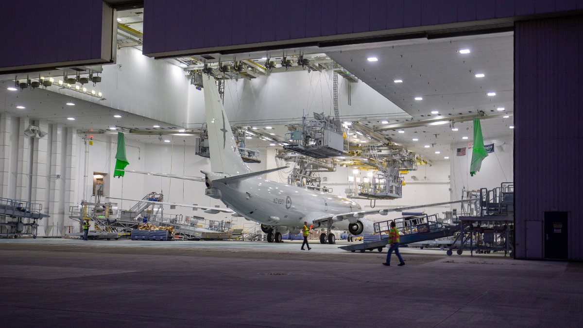 Boeing presentó hoy, en su planta de Renton Washington, el primer avión P-8A Poseidón para Nueva Zelanda con su esquema de pintura de la Real Fuerza Aérea de Nueva Zelanda (RNZAF). Nueva Zelanda es una de las ocho naciones que han adquirido el P-8 como su nuevo avión de patrulla marítima multimisión.
