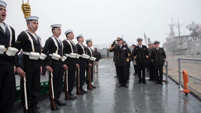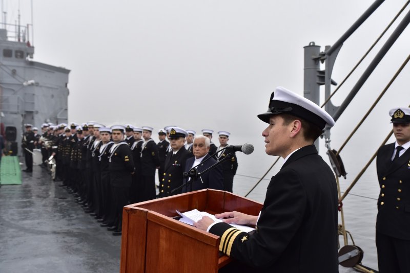 A la ceremonia de aniversario realizada a bordo de la unidad, el martes 8 de agosto, asistió parte del Alto Mando Naval y ex miembros de la dotación, entre los que se incluyó al Comandante en Jefe de la Armada, Almirante Juan Andrés De la Maza, quien señaló  “me siento muy feliz y orgulloso de estar aquí hoy, los quiero felicitar y les quiero pedir especialmente que este buque que ya tiene 40 años tiene que durar 10 años más, 50 años no es nada y estos buques son simples de mantener y aquí como dijo el Comandante, ha habido mucha experiencia, mucha escuela de oficiales, gente de mar, gente joven que ha navegado 34 vueltas al mundo, yo creo que es de los pocos buques que navega tanto y les pido que lo cuiden”.