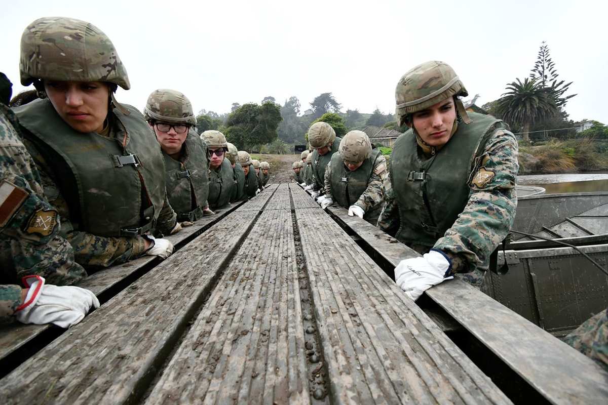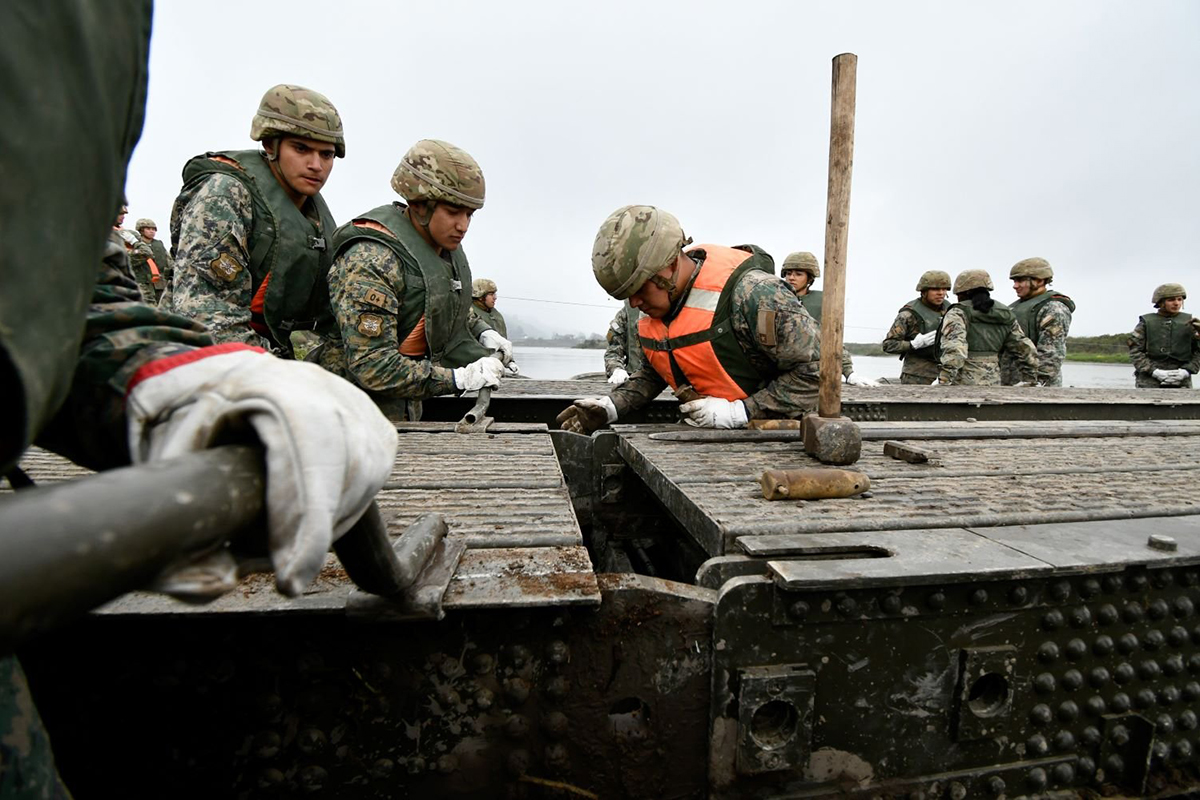 El río Maipo fue el escenario de la instrucción de Medios de Paso en donde Comandantes de Escuadra y Sección, y soldados conscriptos de la Compañía de Ingenieros de Combate del Batallón de Ingenieros “Mackenna” –perteneciente a la Escuela de Ingenieros– pusieron a prueba sus conocimientos y competencias en técnicas y tácticas de apoyo a la movilidad.