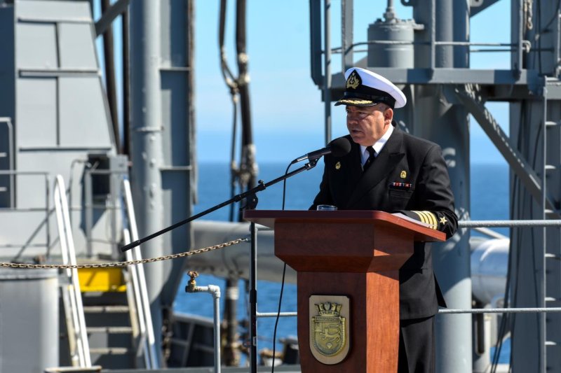 Posteriormente, el Contralmirante Castillo tomó la palabra para felicitar a toda la dotación del AO-52 por su 16º aniversario, exhortándolos a mantener el profesionalismo y compromiso que han caracterizado a la unidad.