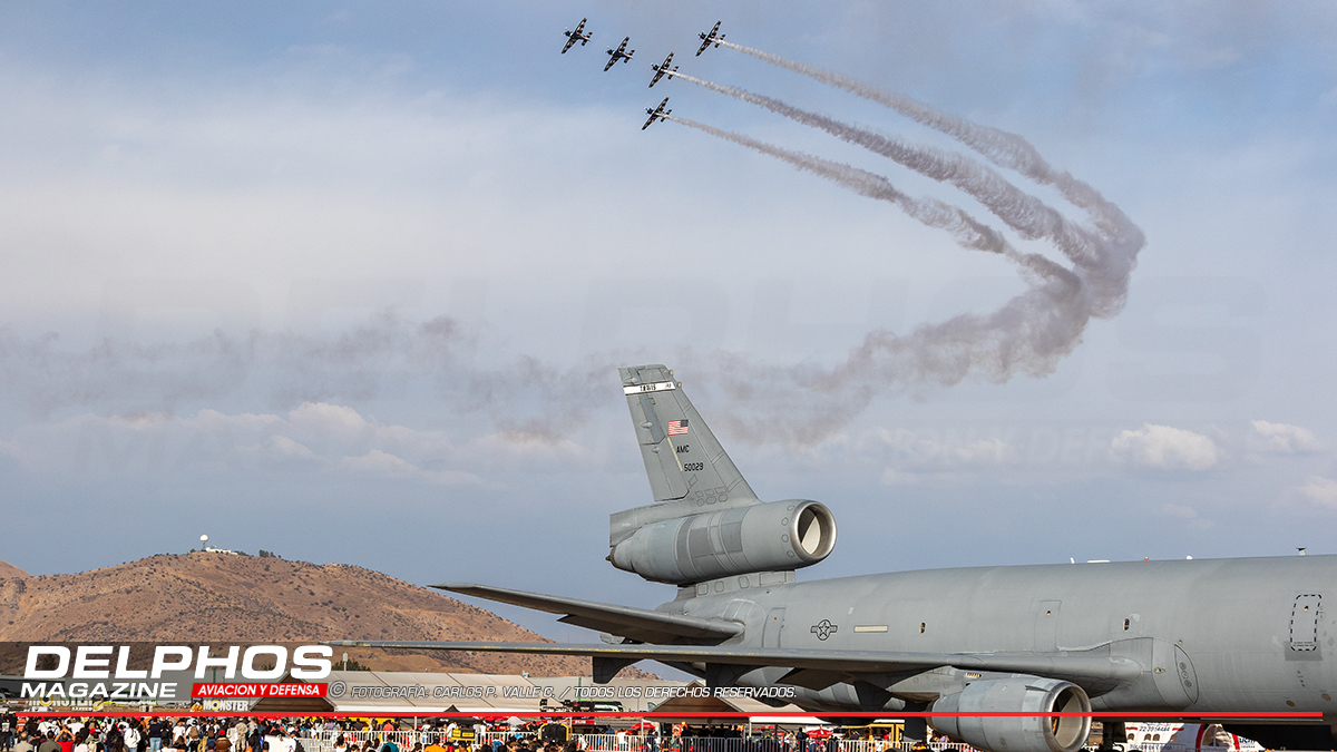 Dentro de las demostraciones aéreas destacaron aeronaves como el F-22 Raptor; los F-16 Fighting Falcon con los modelos Block 50 y Block 15; el F-5 Tigre III; A-29B Super Tucano; DHC-6 Twin Otter y los helicópteros MH-60M Black Hawk y Bell 412. También, deslumbraron las presentaciones acrobáticas del Esquadrão de Demonstração Aérea (EDA) de la Força Aérea Brasileira (FAB), conocido como la “Esquadrilha da Fumaça”; la Escuadrilla de Alta Acrobacia “Halcones” perteneciente al Grupo de Presentaciones de la FACH; el Team Villarica; el RV Team y los pilotos chilenos Mijali Proestakis y Felipe Tapia, entre otros.