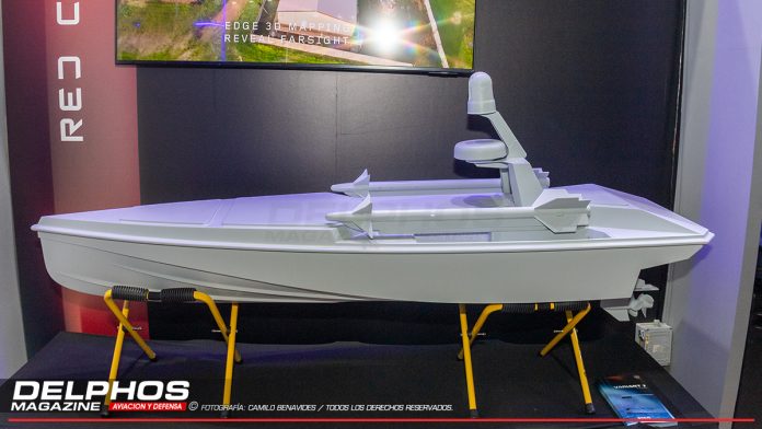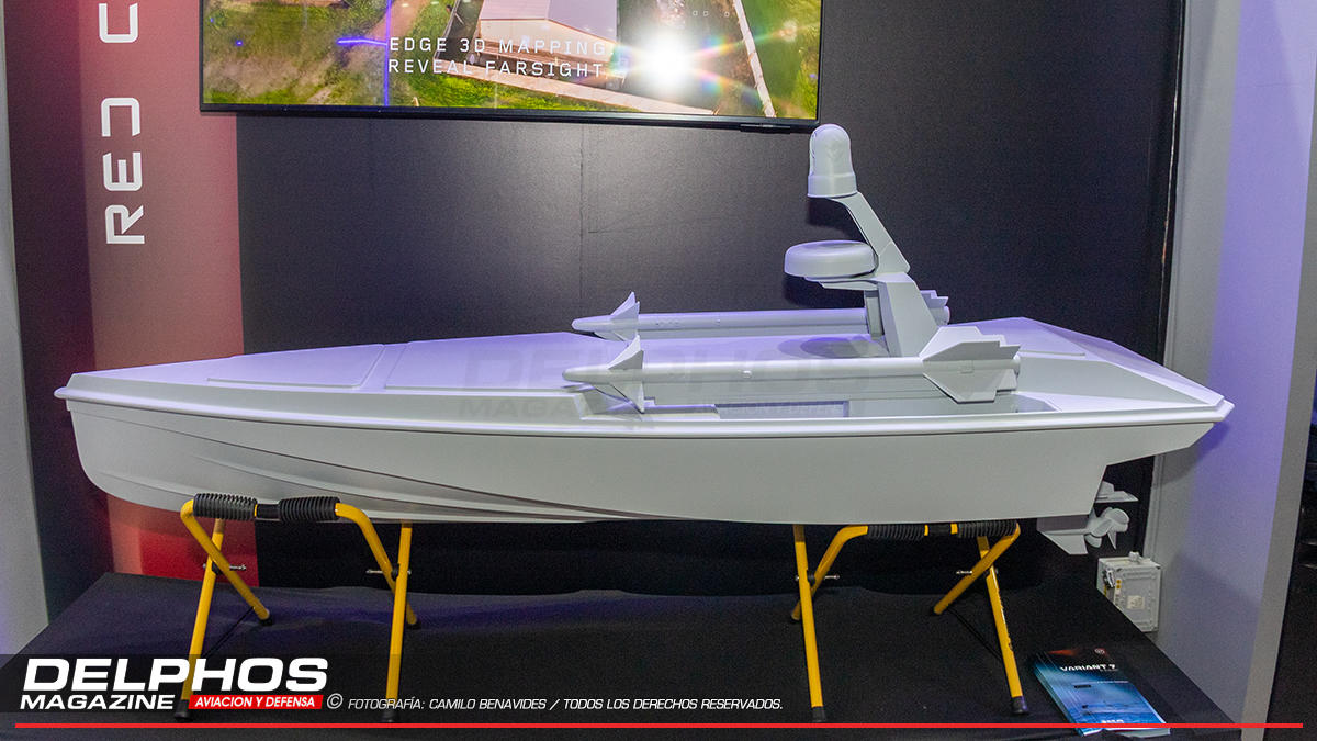 Red Cat: El Variant 7 mide 7.8 m de largo, 2.5 m de ancho, es una lancha bastante grande. Tiene la bondad de que puede estar en el mar 12 días a cinco nudos que eso pues te amplía el rango de la misión. No está limitado por la radiofrecuencia, él se puede conectar por conexión satelital que pues amplía mucho más su rango de juego que entonces podríamos decir que tenemos a los pilotos acá en el centro de la ciudad y puede estar ese bote saliendo allá en el sur de la Patagonia y no hay ningún tipo de problema con eso porque se va a estar conectando de manera satelital.